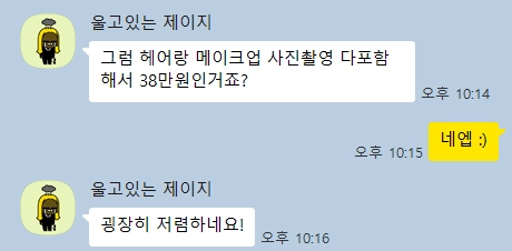 38만 원 (헤어+메이크업+스타일링+촬영 전부 포함)