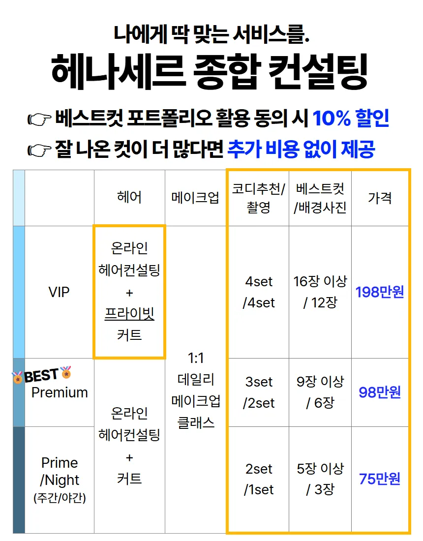 오프라인 종합 컨설팅 (헤어 + 메이크업 + 코디 + 사진)
