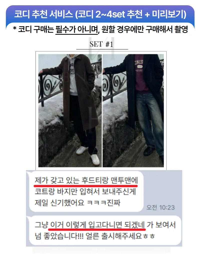원하시는 코디와 분위기에 맞춰